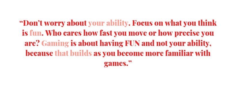 AL: Don’t give up on yourself before you’ve even given it a shot. I often hear concerns of ‘I’m not a gamer’. If you’re playing Candy Crush, you’re a gamer. If you play Call of Duty, you’re a gamer. Make sure you don’t disqualify yourself because you think you’re ‘not a gamer’ because chances are you probably are.
