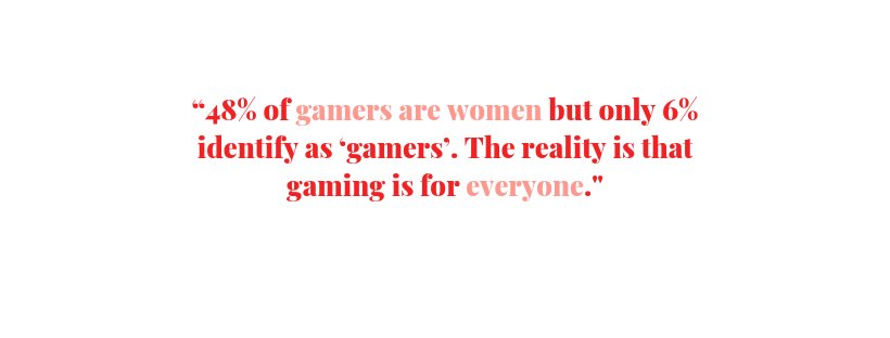 AL: Pew Research Center data shows that 48% of gamers are women, yet only 6% self-identify as ‘gamers’. Why aren’t more women willing to call themselves gamers? I don’t know the answer… is it because they’re not playing on PC or console? Is it because they’re not playing large, established multiplayer games? Is it because they don’t identify with ‘gamer culture’? Is it because of the types of toys we’re exposed to as children? There is a perception that gaming is male dominated, but the reality is that gaming is for everyone.