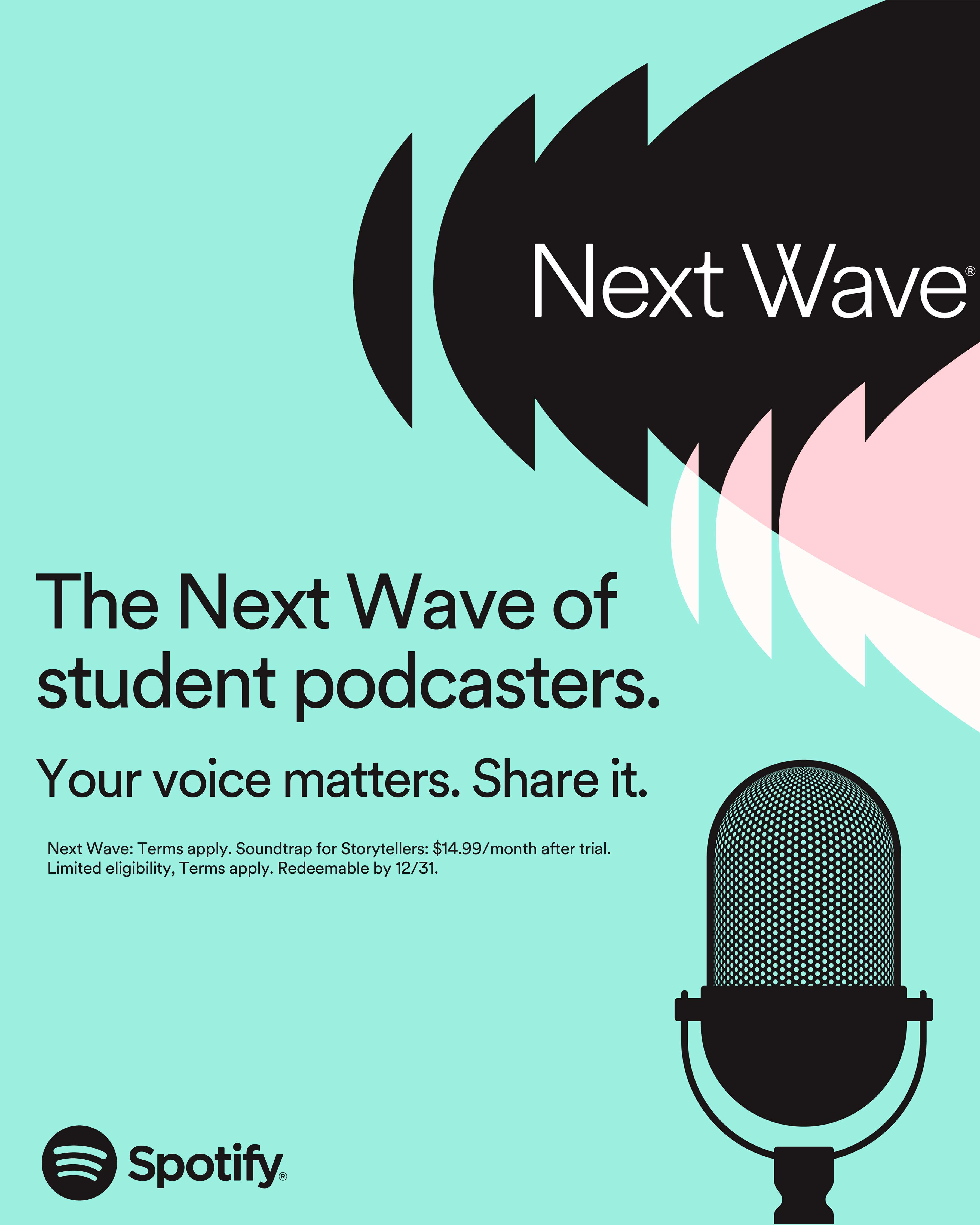 Well, those dreams may not feel so far off anymore – at least not for current students in the US or UK – thanks to Spotify. To discover and empower the emerging voices that are going to continue to shape the podcast world, the company is launching Next Wave, a program that currently enrolled college students can sign up for whether they’ve got a podcast up and running already or have, up until now, just been daydreaming about one.