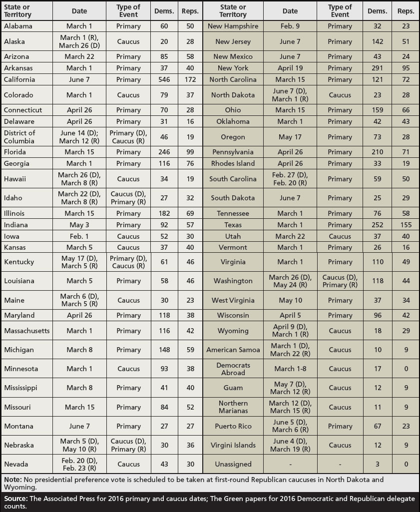 If you’re going to vote, you probably should know when the polls will be open. The general election will be held on November 8th. But currently, we are in the primary and caucus stages of the election. These state-specific elections will determine which two candidates will be on the ballot in the general election next fall. This is an important step in the election, so if your state’s caucus or primary hasn’t passed yet you should definitely cast your vote! It could mean the difference between seeing Hillary or Bernie, Donald or Ted in the White House! Below is the schedule for the remaining primaries and caucuses.