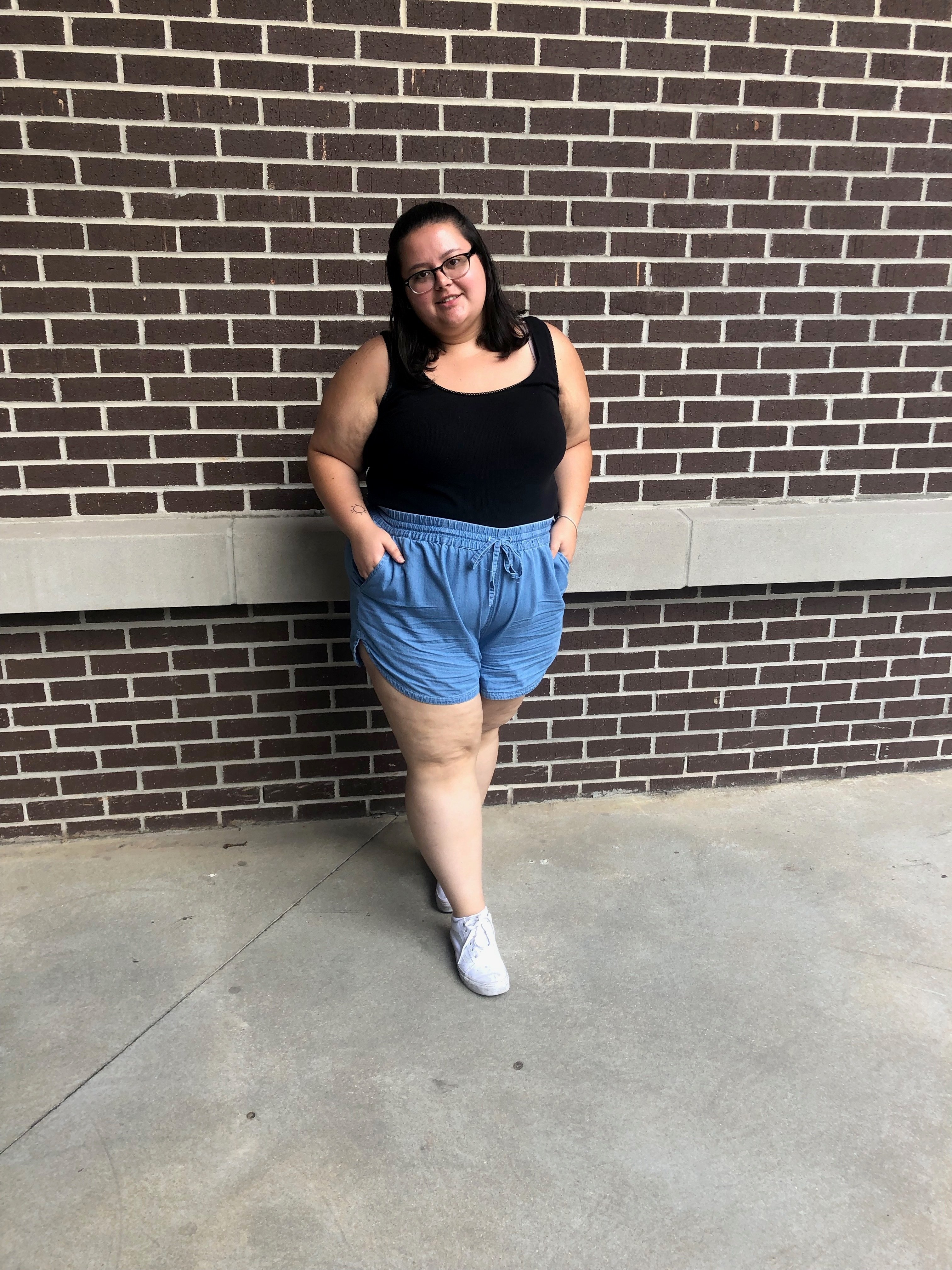 I’ve become slightly comfortable wearing tank tops, and sometimes I’ll occasionally wear shorts. However, wearing them together has always been a fear. I could never show my upper arms and my thighs at the same time. Even when I went to Disney World, I wore these shorts with a t-shirt. This day, I challenged my fear of exposing both my upper arms and my thighs for the world to see.