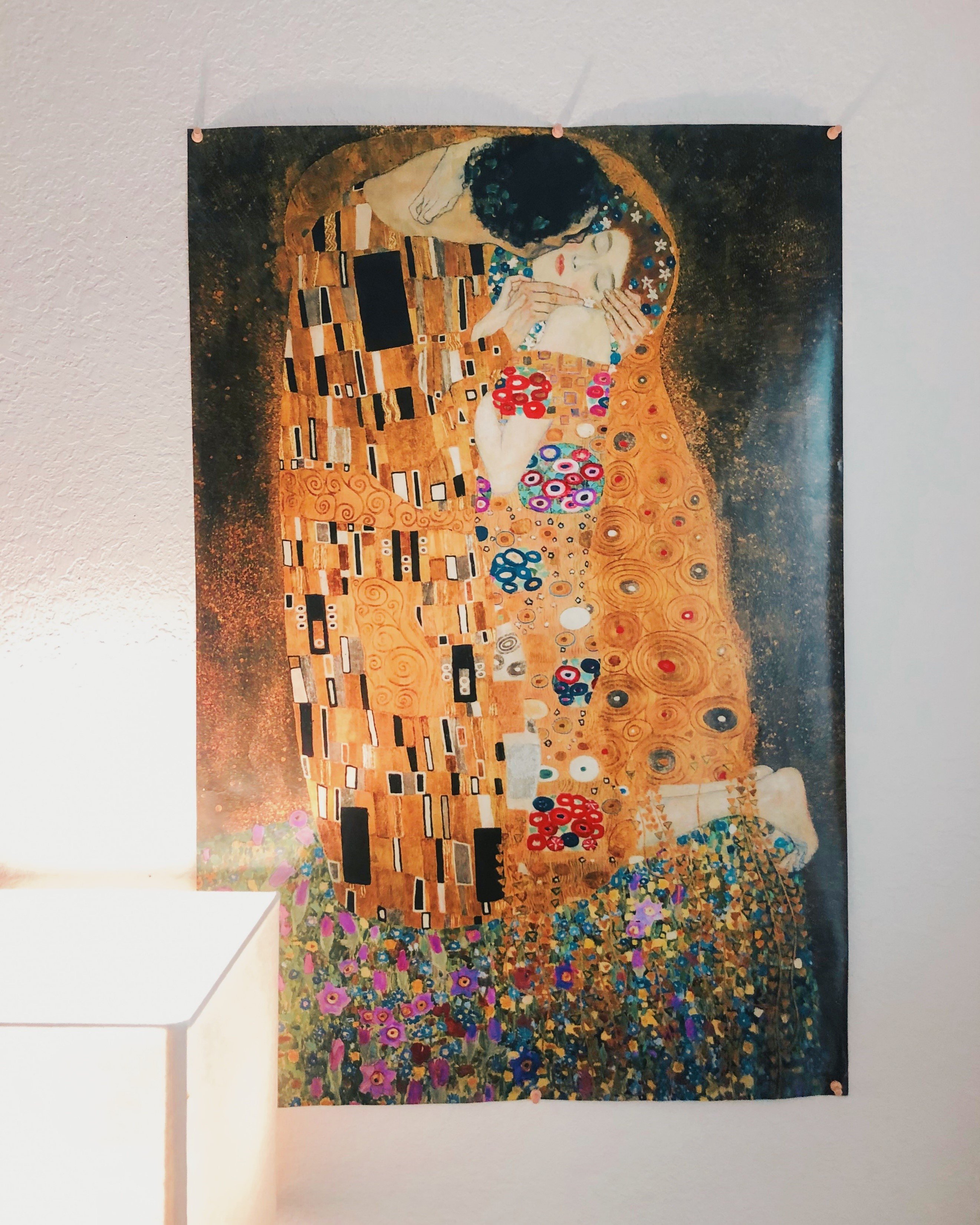 Sophia is a sophomore double majoring in philosophy and economics. When walking into her room, I really loved how she was unafraid of using color and such a variety of them, especially when it came to her bed. I asked what her inspiration was and she quickly answered that there wasn’t a theme and that she really just buys pieces she enjoys and merges them together into her room. Pulling off an eclectic room can be difficult, but Sophia has mastered it. Her décor items were either found at Target or were plucked from FSU’s Market Wednesday. Sophia also credited a few pieces to thrifting, including a beautiful, vintage picture frame that she has filled with pictures from her best memories. Sophia also noted that she wanted to include elements of home into her room. She incorporated home by bringing back succulents she got from there and starting a mini succulent garden on her window sill in her room. Sophia also has portraits of dogs and when asked about them, she said they reminded her of her dog back home and it was her way of bringing her to Tallahassee even though she couldn’t due to her dog’s older age. I then asked what her favorite piece was and Sophia said that a poster she bought at Market Wednesday was by far her favorite. The poster has the famous painting “The Kiss” by Gustav Klimt on it and added beautiful colors into her room. When asked why she loved this piece the most, Sophia said she admired the abstract quality of it and that she didn’t really understand it at first but has grown to love the creativity of it. I loved Sophia’s take on the eclectic lifestyle and found it quite inspiring!