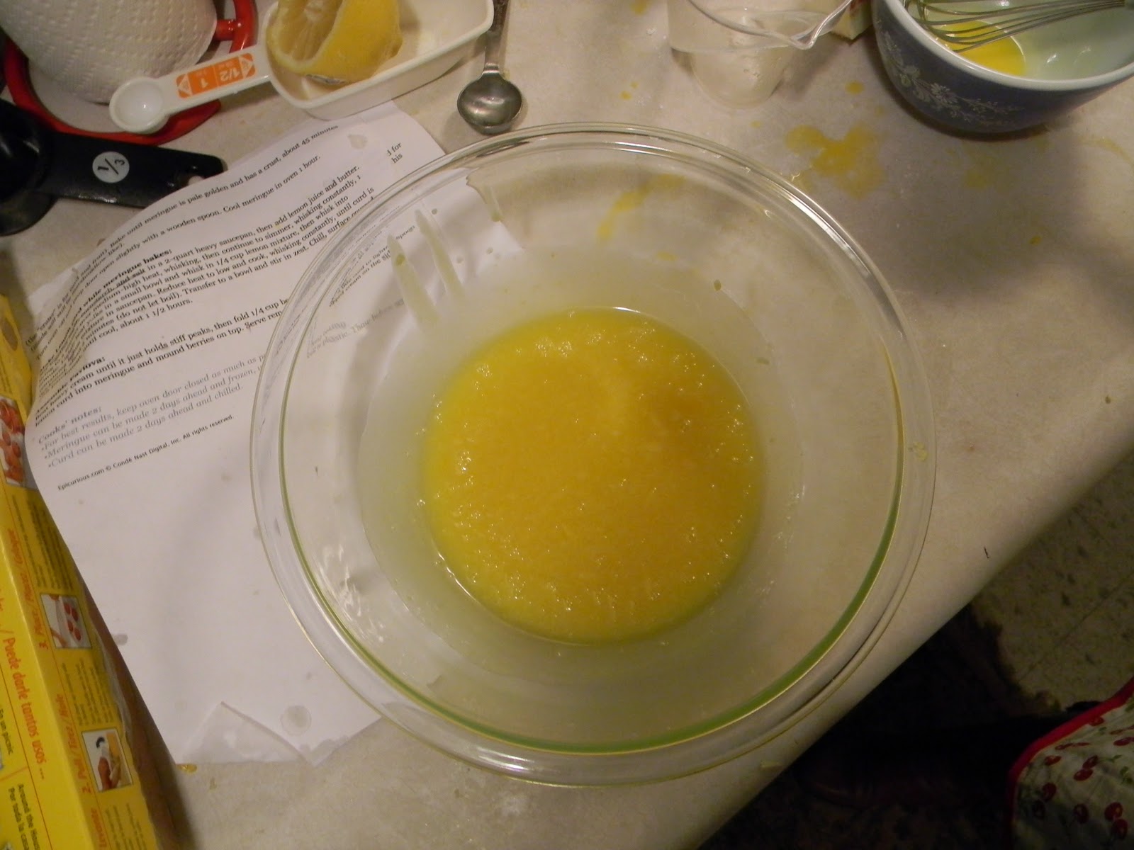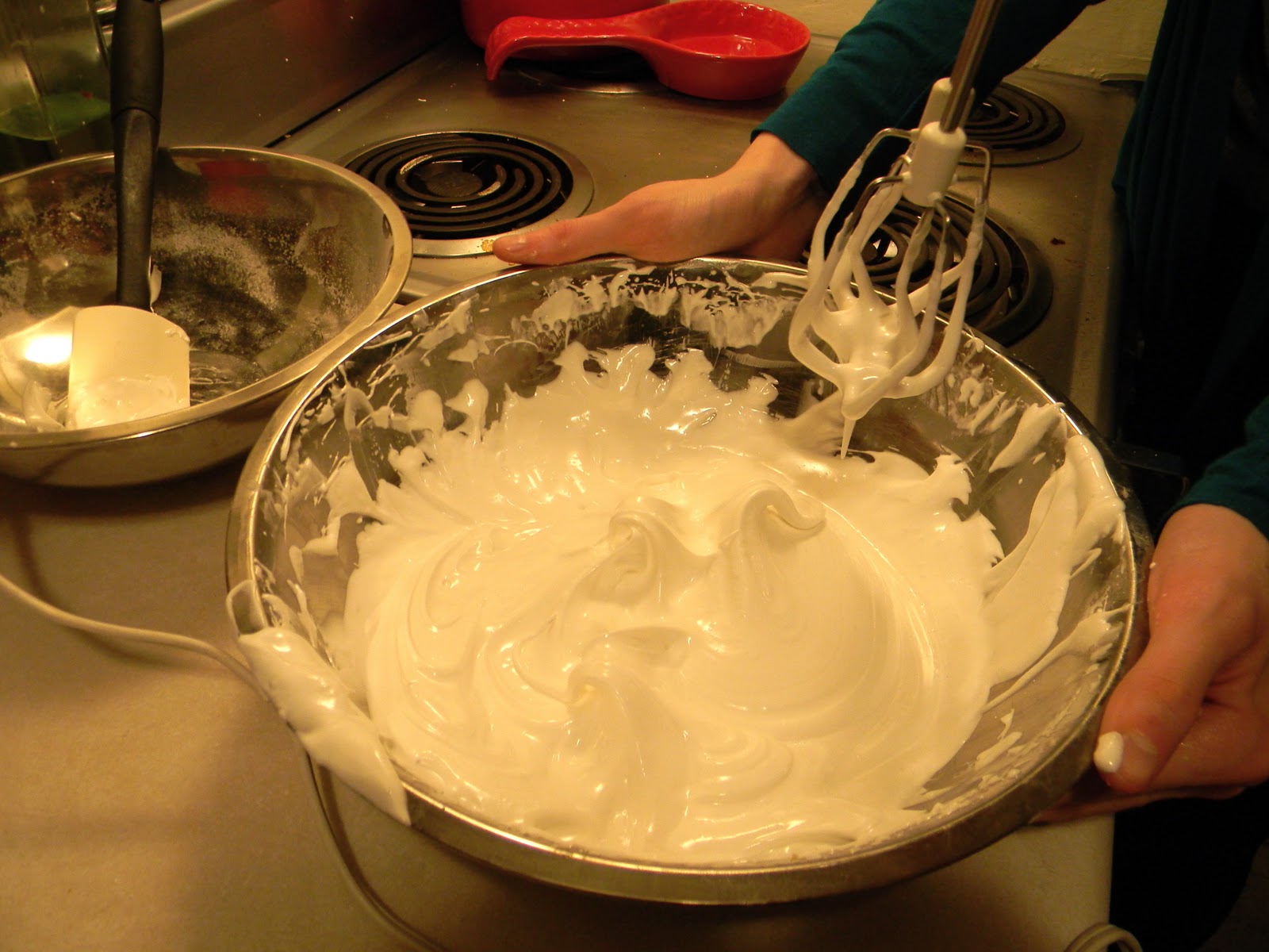 The hardest part was getting the meringue just right. A meringue is made of sugar and egg whites. Make sure that you don’t get ANY yoke in the mix. In addition, you want to beat the eggs to the point that when you lift up your mixer that it leaves a peak that doesn’t move (hence instructions, beat until stiff).