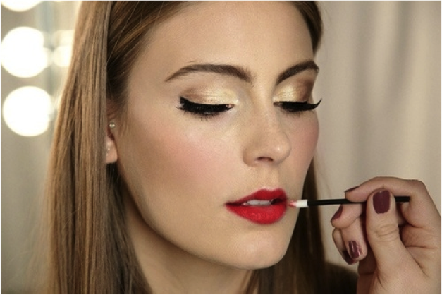 For this New Year’s look you want to keep the eyes pretty simple as well, leaving your lips to be the statement. To make your makeup last all night, start with a primer and a base. Then, apply a light shimmery shadow to the lid and a matte brown to the crease. This allows you to have a little bit of color on the lids and define your crease. Next, take a black liner and create a wing on your lash-line. Finish the look with a little bit of mascara and voila!, simple but sultry eyes.