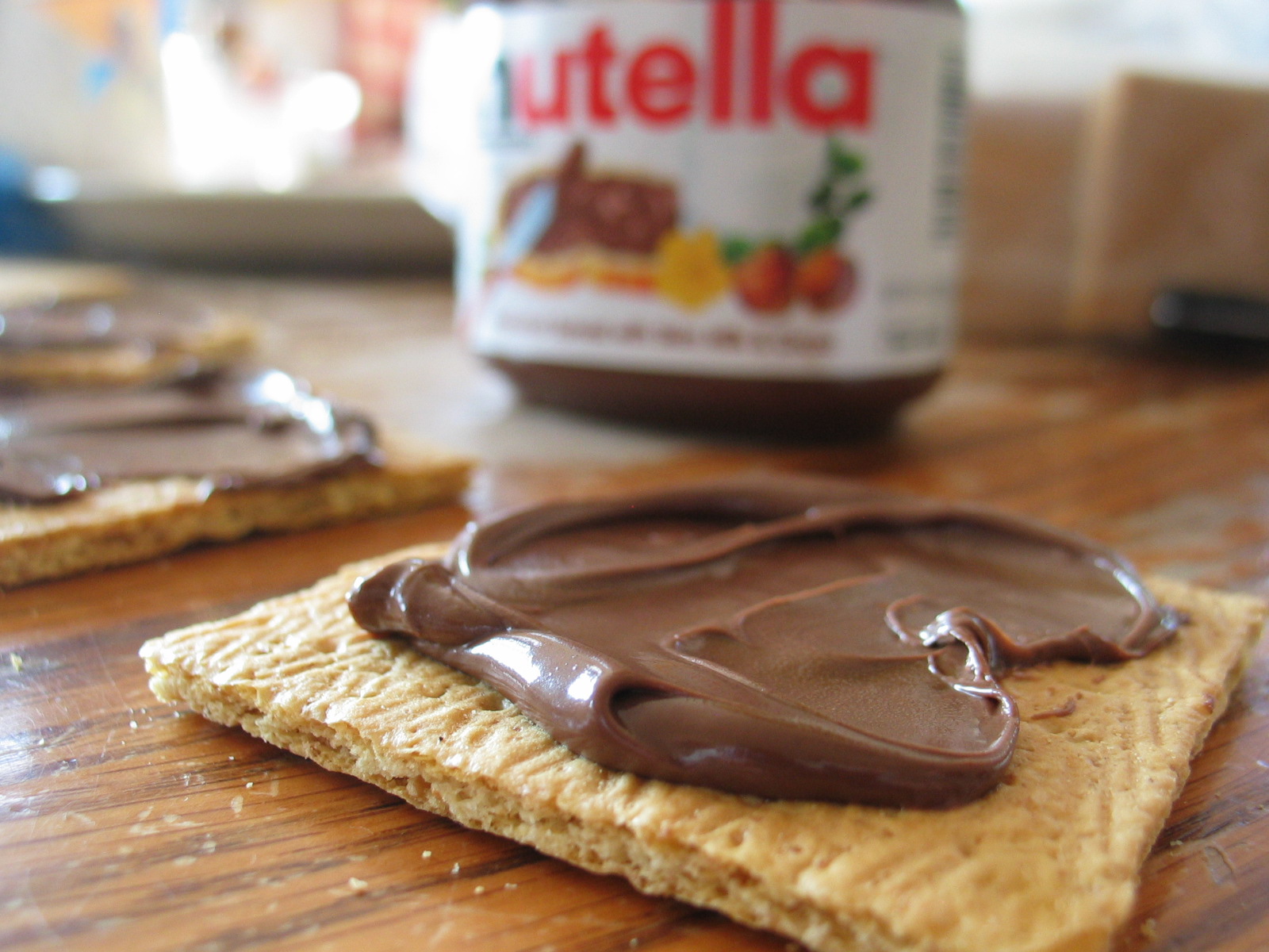 Too cold for smores around the bonfire? Nutella can fix that. Spread it on some graham crackers for a great snack, or add some marshmallows for an easy smore!