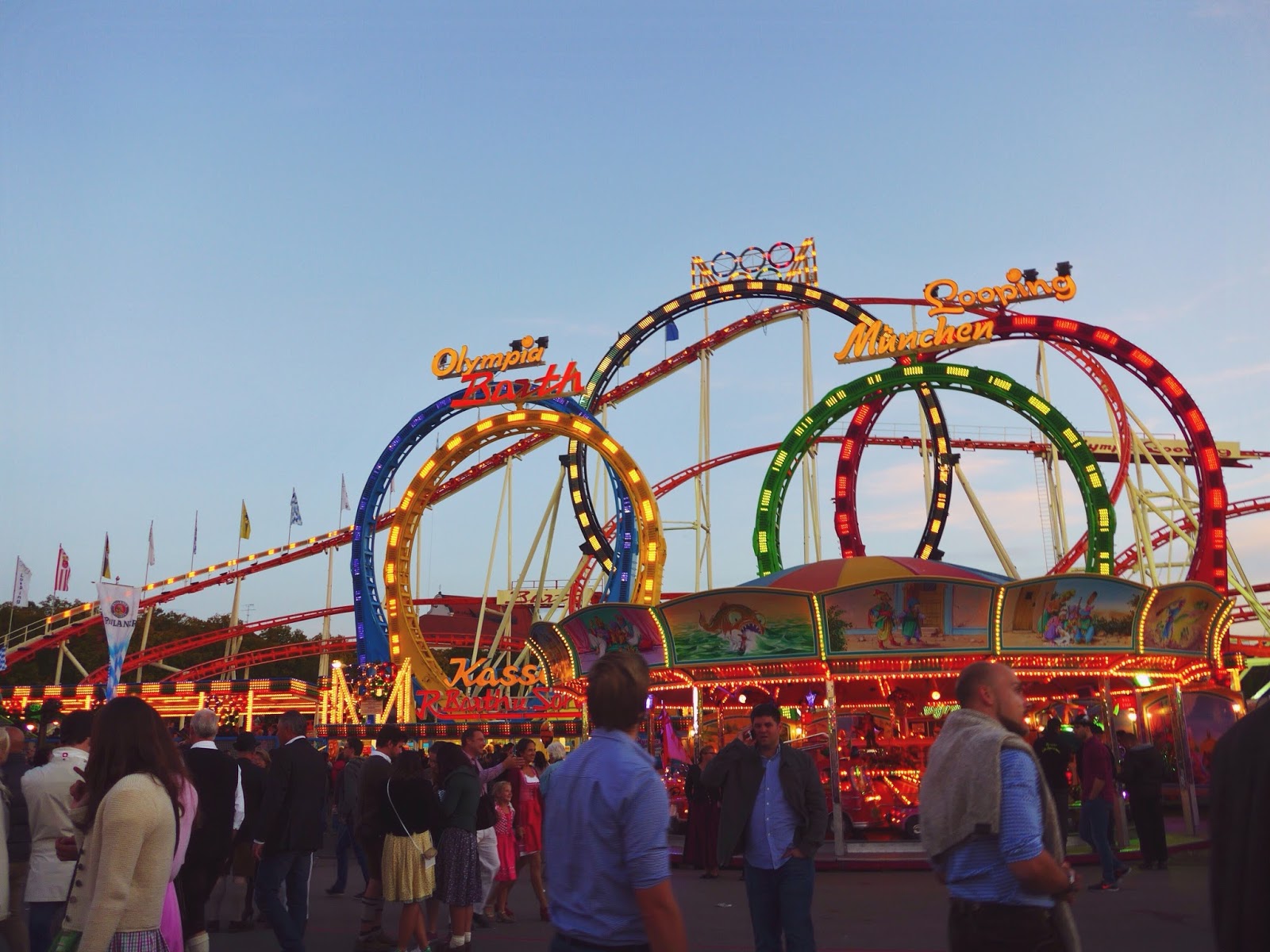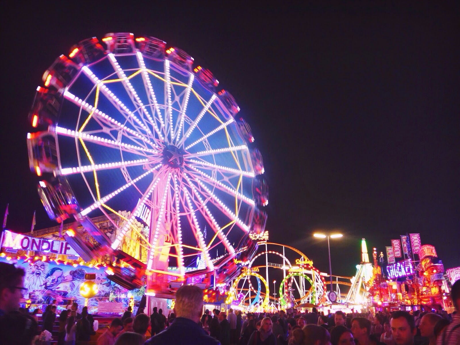 Later that evening, we went back to Oktoberfest just in time for sunset and rode as many rides as we could. It was stunning to see the carnival transform into a moving light show at night. We ended up going on five rides, each with a unique set-up. One of them was a massive rollercoaster with five loops, while another was a swing carousal with a height of 384 ft. Oktoberfest isn’t just a carnival, but the king of all carnivals.Â