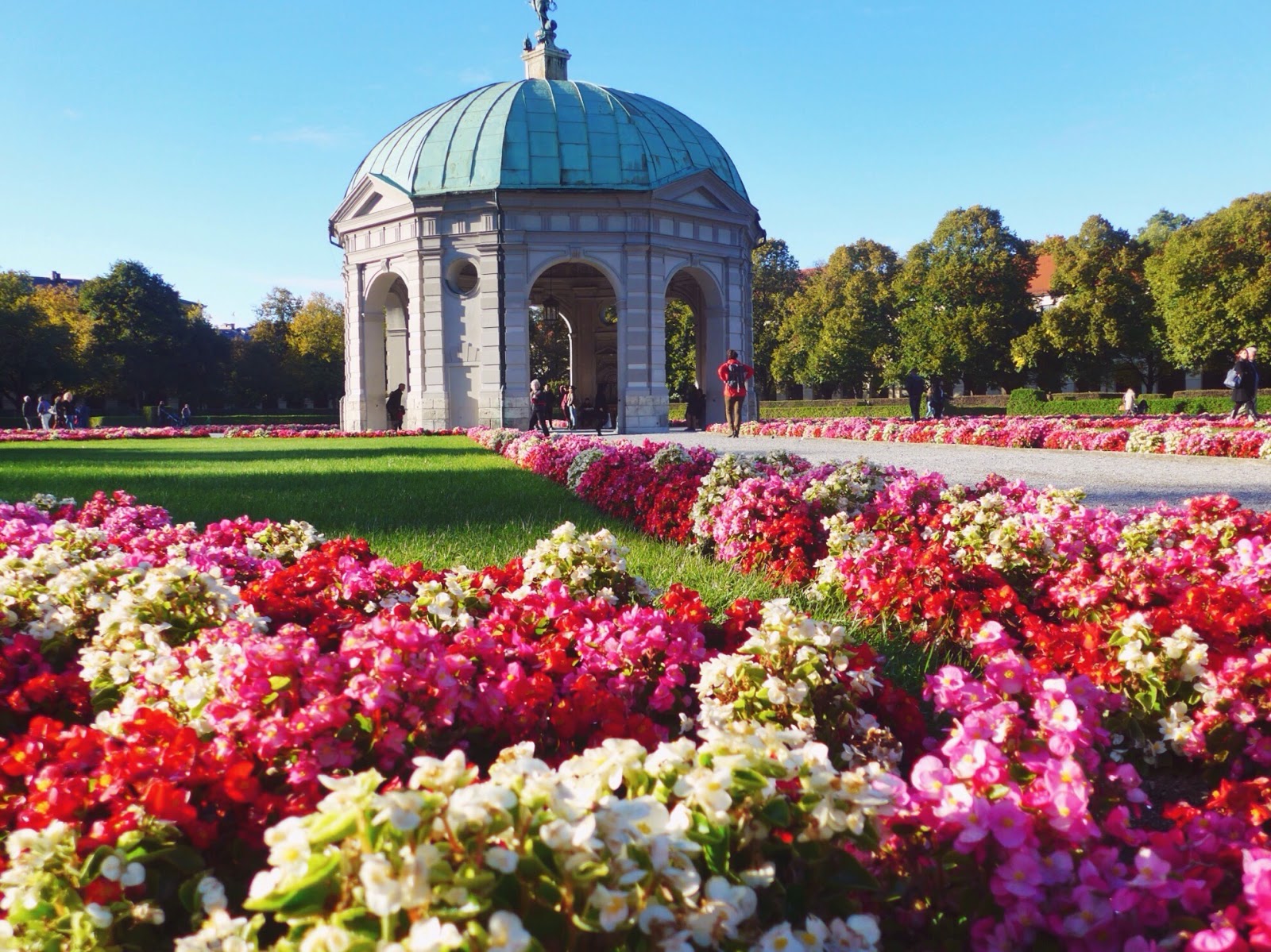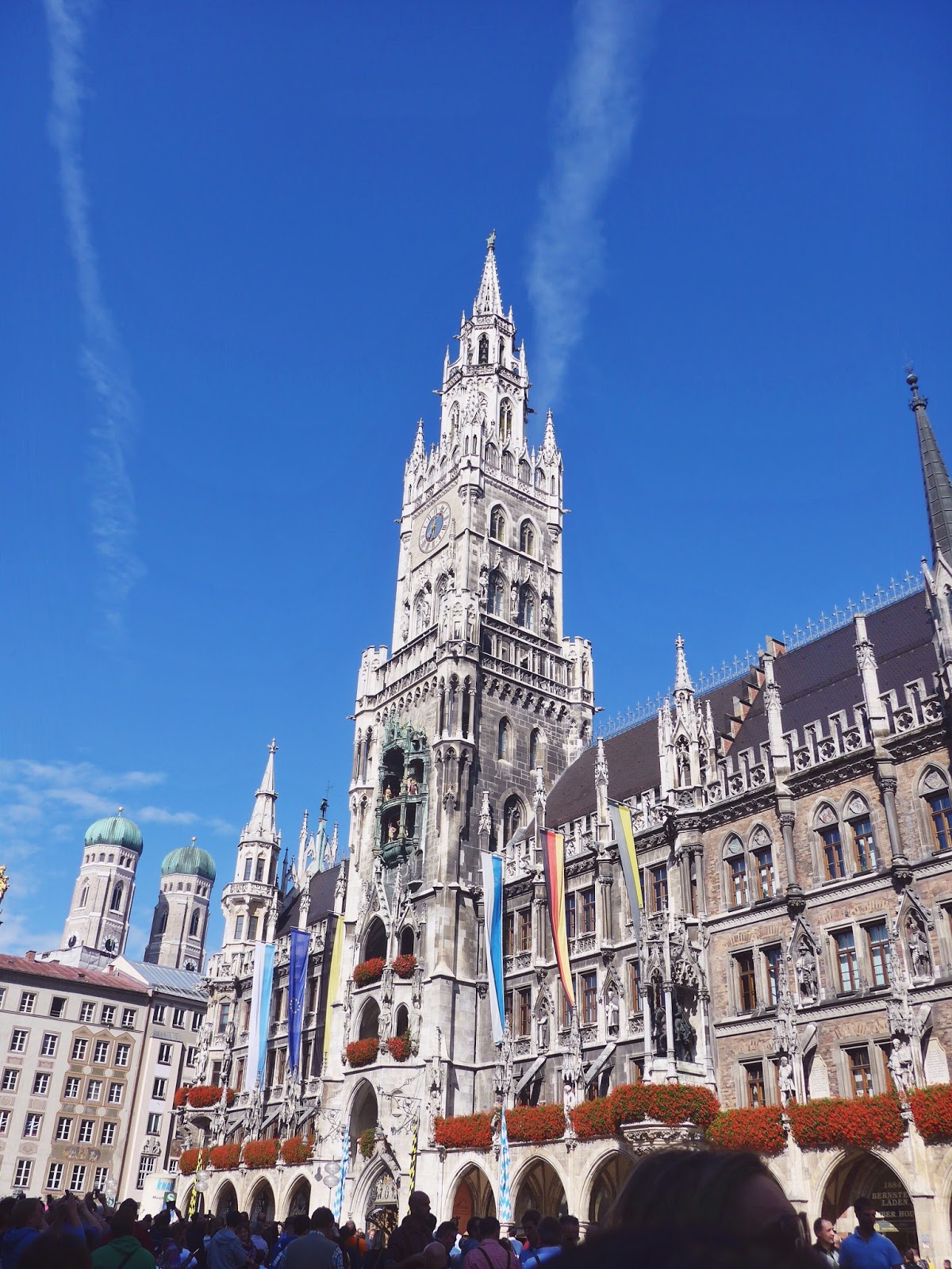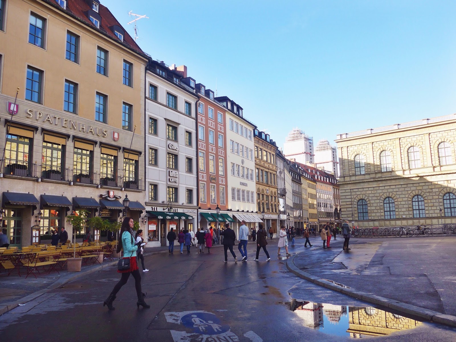 The next day, we decided to sleep in and explore Munich. Compared to Florence, Munich has a much more modern feel. Thank god for Munich’s large, urban streets (we were definitely tired of walking in single-file lines in the tightly packed streets of Florence). Munich also had an array of colorful buildings, which reminded me of London. Although almost all of the stores were closed due to Unity Day—a German holiday celebrating the reunification of Germany in 1990—we were thankful to have spent some time experiencing the city, rather than being stuck at a carnival all weekend.Â