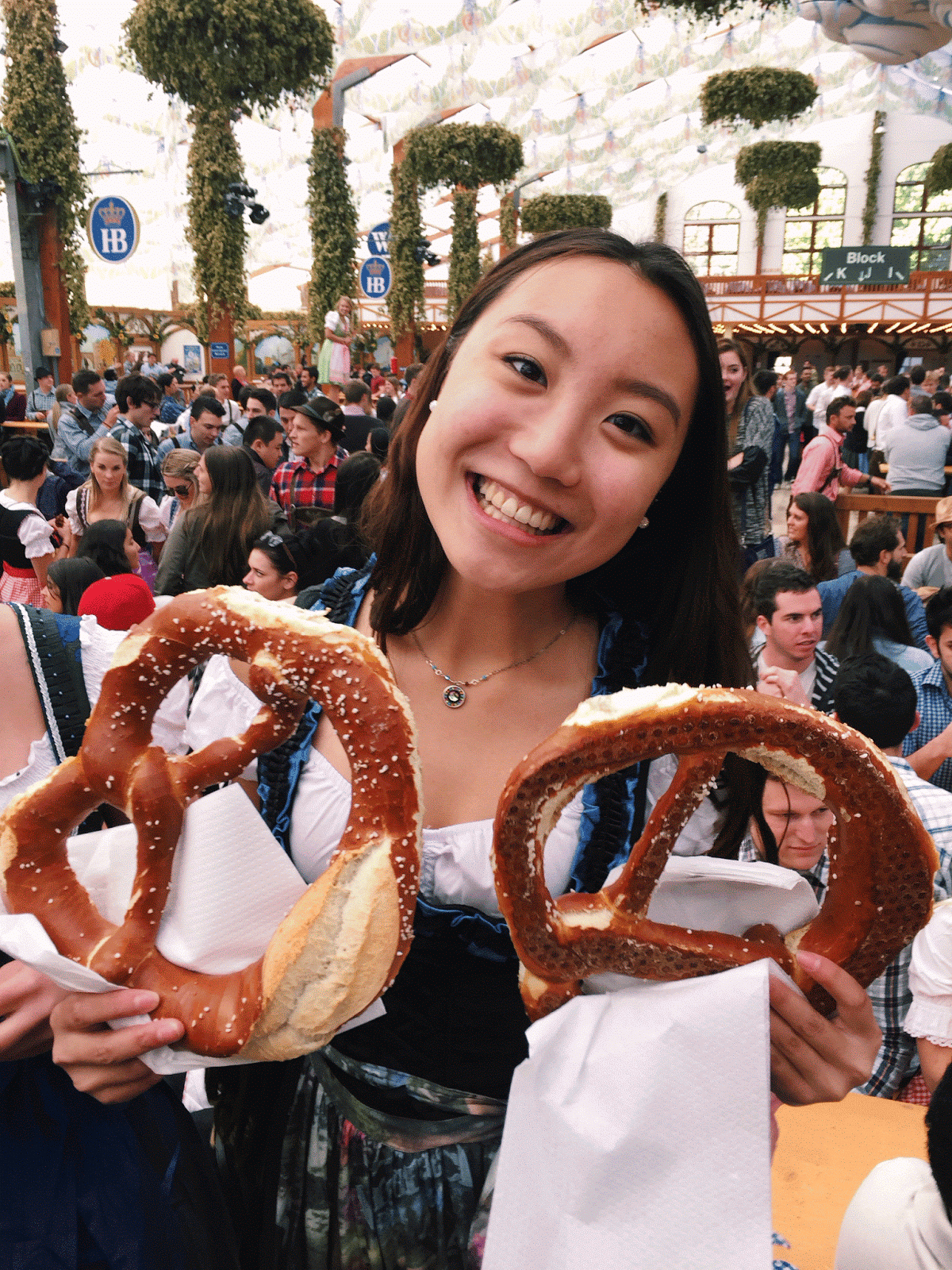 Two weekends ago, my friends and I took a 10pm train on Thursday night from Florence to Germany to attend Oktoberfest. With a little less than six hours of sleep, we got off the train around 6:30am on Friday morning and went directly to the festival, where we waited in line for three hours before entering one of the tents. We spent the entire day at Oktoberfest, dining and celebrating. Let’s just say our Friday was filled with lederhosen, dirndls, beer, bratwurst, prost and many, many pretzels.Â
