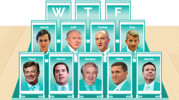 Other notable individuals under scrutiny include Jeff Sessions, Jared Stone Jr, Michael Flynn, Jared Kushner, and Michael Cohen.