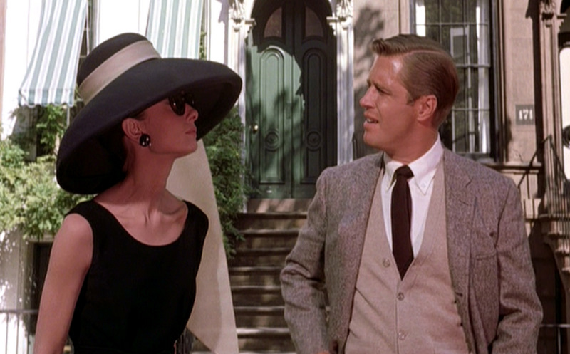 In the beginning of Breakfast at Tiffany’s, Holly hurriedly searches for her black, alligator-skin kitten heels, (which she eventually found in a plant). She wears them throughout the film with multiple different articles of clothing, like her black, below-the-knee Givenchy gown, turtleneck, cigarette pants, and even a trenchcoat. Â