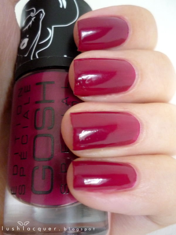 Try Gosh Cosmetics Nail Polish in “Berry Me” ($7) or Deborah Lippmann Nail Polish in “Just Walk Away Renee” ($18)