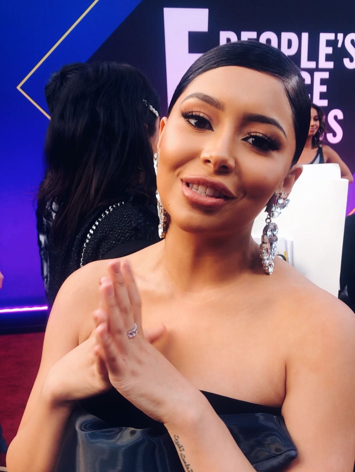 Jaicy Elliot, known for her role as Dr. Taryn Helm on Grey’s Anatomy, stunned in her beautiful Adrianna Pappel dress. She dished about clay masks, “Whenever I’m home and I don’t have anything to do, I slap on a clay mask and it makes me feel like an adult. Like I know what I’m doing.”