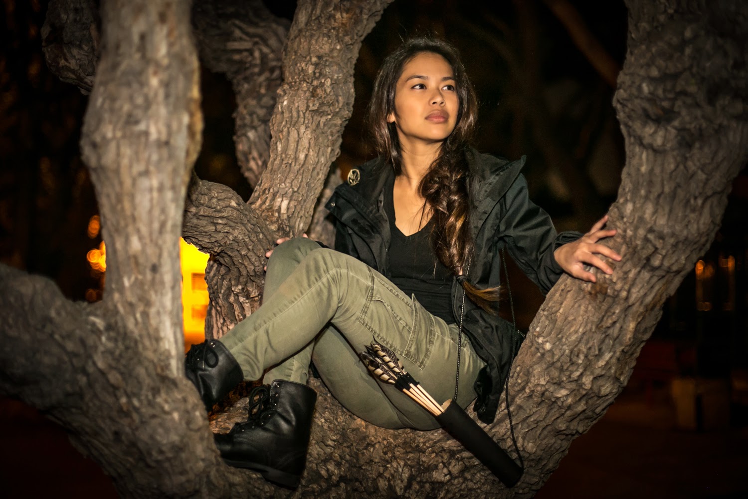 WHAT TO DO: Tie your hair into a long side-braid and print out this mocking jay image, pinning it onto your jacket.