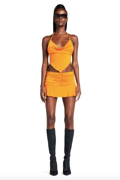 Maddy’s confidence speaks volumes through her sense of style. Seriously, every look uses interesting cutouts, bright colors, and an early-2000s influence to show off her personality. Matching co-ord sets like the one above and anything from I.AM.GIA is a surefire way to emulate her style.